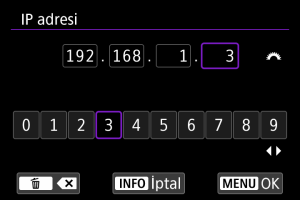 - Sayısal giriş için ekrana erişmek üzere bir seçeneği belirleyin.