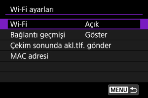 Wi-Fi ile bağlanan cihazların bağlantı geçmişi için [Göster] veya [Gösterme] ayarı yapabilirsiniz.