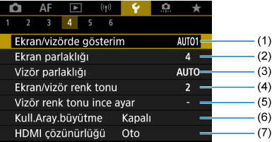 - (4) Ekran/vizör renk tonu