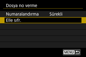 Kart değiştirdikten veya klasör oluşturduktan sonra dosya numaralandırmasını 0001’den yeniden başlatmak için