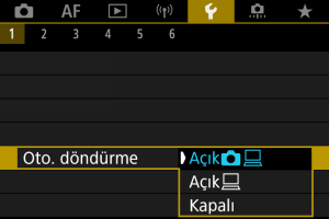 - Otomatik döndürme [Kapalı] ayarındayken çekilen görüntüler, daha sonra otomatik döndürmeyi [Açık] yapsanız dahi döndürülmez.