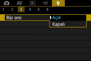 Odaklanma, otomatik zamanlayıcı, deklanşör, ve dokunmatik işlemler için bip sesini kapatır.