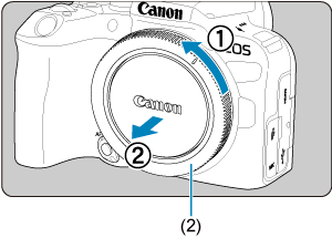 - Arka lens kapağını (1) ve gövde kapağını (2) ok ile gösterildiği gibi çevirerek çıkarın.