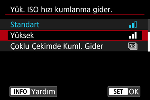 Karartılan menü öğeleri ayarlanamaz. Menü öğesi, başka bir işlev bu ayarı geçersiz kılıyorsa karartılır.
