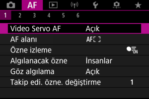 tuşuna basma veya AF yöntemini değiştirme gibi bir işlem yaptıktan sonra video kaydına geri dönerseniz Video Servo AF sürdürülecektir.
