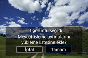 Görüntüleri yükleme listesinden kaldırmakla ilgili bir mesaj görüntülendiğinde [Tamam]’ı seçin.