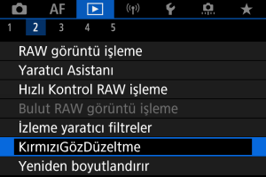 Kırmızı gözden etkilenen görüntülerin ilgili kısımlarını otomatik olarak düzeltilir. Görüntü ayrı bir dosya olarak kaydedilebilir.