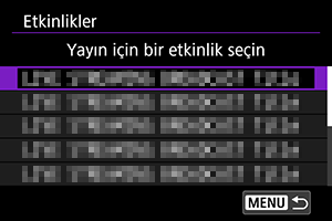 - Daha önce YouTube sitesinden eklemiş olduğunuz bir etkinliği seçin.