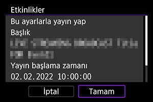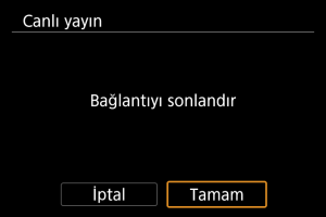 Fotoğraf makinesinden akış yapmak için makinede “Canlı yayın” ayarı yapın.