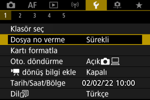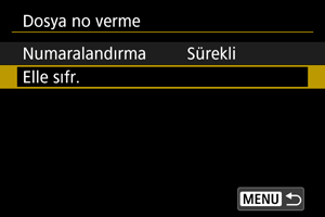 Kart değiştirdikten veya klasör oluşturduktan sonra dosya numaralandırmasını 0001’den yeniden başlatmak için