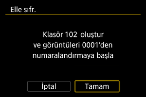 - Yeni klasör oluşturmak için [Tamam] seçimi yapın. Dosya numarası 0001 ile başlar.