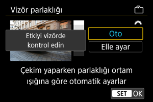 [: Vizör parlaklığı] () seçimi yapın.
