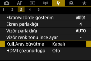 1. [Ayarlama: Kull.Aray.büyütme] seçimi yapın.