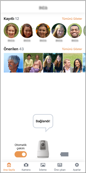 - Cihazlar bağlandıktan sonra Connect App for Mini PTZ Cam uygulamasının ana ekranı açılır ve kameranın iletişim göstergesi yanar.