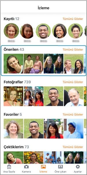 Çekilen tüm görüntülerden otomatik olarak seçilmiş olan önerilen görüntüleri görüntüleyebilirsiniz.