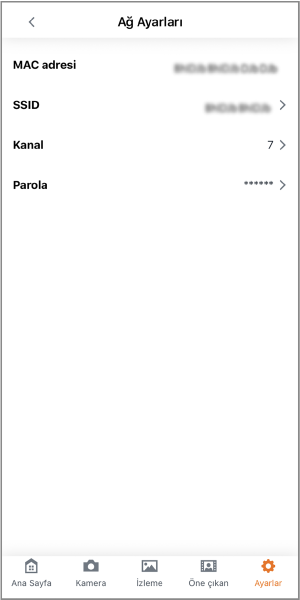 - [SSID] ve [Parola] sadece Wi-Fi üzerinden bağlı iken kontrol edilebilir.