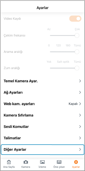 Kamera ile iletişim kurmak için kullanılan ayarları siler. Ayarlar silindikten sonra akıllı telefon ile kamerayı yeniden eşleştirin. Bu ayar, uygulama kameraya bağlı değil ancak kayıtlı iletişim ayarlarına sahipse görüntülenir.