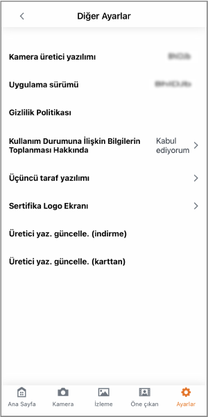 Kamera donanım yazılımını güncellemek için. Görüntülenen talimatları izleyin.