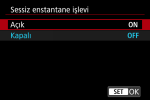 Deklanşör seslerini, işlem seslerini ve flaşın ve diğer ışık kaynaklarının patlamasını ve yanmasını devre dışı bırakır.
