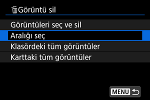 : Görüntü sil] içinde [Seçim aralığı] seçim yapın.