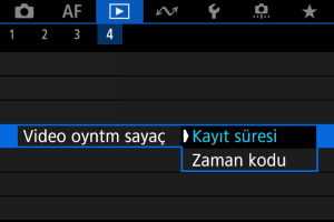 : Süre kodu] içinde [Video oyntm sayaç] ayarı [