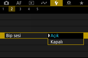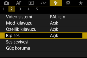 Odaklanma, otomatik zamanlayıcı, deklanşör, ve dokunmatik işlemler için bip sesini kapatır.