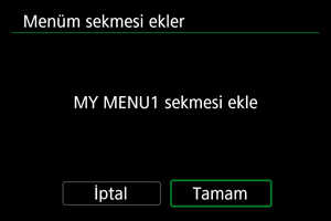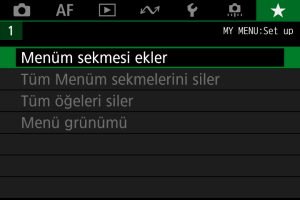 Oluşturduğunuz tüm Menüm sekmelerini silebilirsiniz. [Tüm Menüm sekmelerini siler] seçildiğinde, [MENÜM1] ile [MENÜM5] arasındaki tüm sekmeler silinir ve [] sekmesi varsayılan ayarına geri döner.