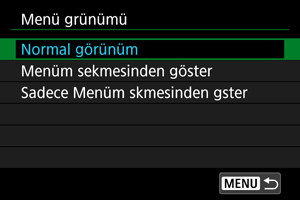 [Menü görünümü] seçimi yaparak tuşuna basıldığında ilk önce menü ekranının görüntülenmesini sağlayabilirsiniz.