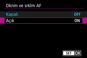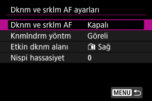 : Dknm ve srklm AF ayarları] seçimi yapın.