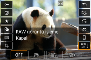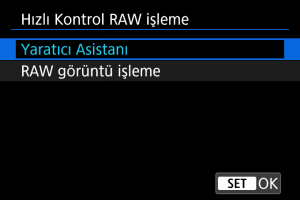 Hızlı Kontrol ekranından gerçekleştirilen RAW görüntü işleme türünü seçebilirsiniz.