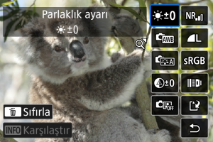 kadranını çevirerek [Dğşkltn sonra] ve [Çekim ayarları] arasında geçiş yapabilirsiniz.