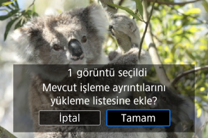 Görüntüleri yükleme listesinden kaldırmakla ilgili bir mesaj görüntülendiğinde [Tamam]’ı seçin.
