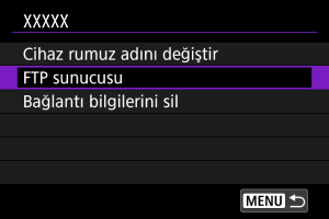 - Aşağıdaki öğeler Görüntülenen Fotoğraf Makinesini FTP Sunucusuna Bağlama konusunda açıklanmamıştır.