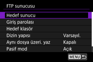FTP sunucu ayarlarını yapılandırabilirsiniz. Bu, [: