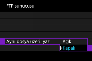 FTP sunucusunun hedef klasöründe aynı adlı bir dosya zaten varsa, yeni dosya IMG_0003_1.JPG dosya adında olduğu gibi bir alt tire ve bir numaradan oluşan bir uzantıyla kaydedilir.