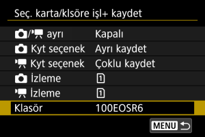 : Seç. karta/klsöre işl+ kaydet] seçimi yapın.