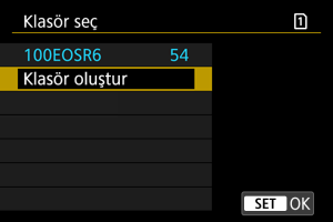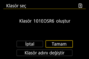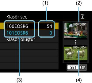 - Bir klasörde en fazla 9999 görüntü olabilir (dosya numarası 0001 - 9999). Bir klasör dolduğunda, otomatik olarak klasör numarası bir artırılmış yeni bir klasör oluşturulur. Ayrıca, manuel sıfırlama işlemi () uygulandığında, otomatik olarak yeni bir klasör oluşturulur. 100 ile 999 arasında numaralandırılmış klasörler oluşturulabilir.