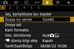 Lütfen unutmayın, dosya numaralandırma, geçiş yaptığınız kartlar veya klasörlerdeki mevcut olan görüntülerden itibaren devam edebilir. Ardışık dosya numaralandırması kullanmak istiyorsanız, her seferinde yeni formatlanmış bir kart kullanmanız önerilir.