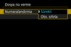 Klasöre kaydedilen görüntülere 0001 - 9999 arası bir dosya numarası atanır. Görüntü dosyalarının numaralandırma yöntemini değiştirebilirsiniz.