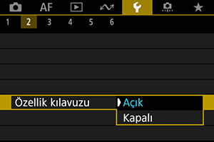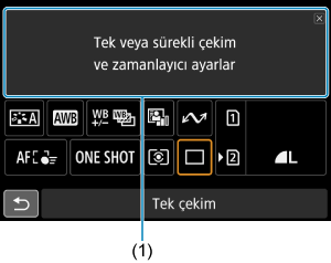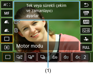 Hızlı Kontrolü kullandığınızda işlevlerin ve öğelerin kısa bir açıklaması görüntülenir.