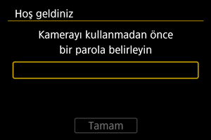 Güç düğmesi konumuna getirildiğinde veya makine otomatik kapanma modundan çıktıktan sonra girilen parolayı yönetmek için bu ayarları kullanın. Fotoğraf makinesinin başlatılması sırasında gerekli olan parolayı ayarlama talimatları için, Parola Ayarlama konusuna bakın.