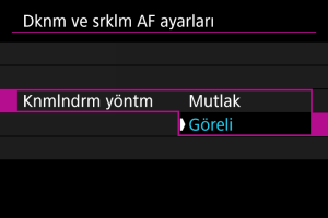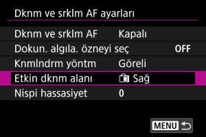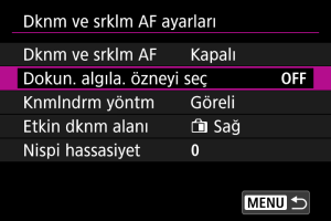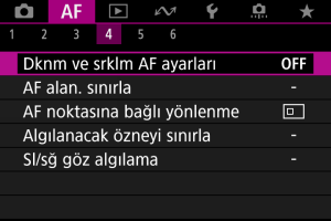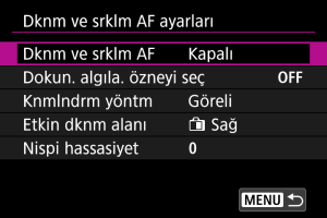 Bu ayarında [Dknm ve srklm AF], [Açık] konumundayken kullanılamayacağını unutmayın.