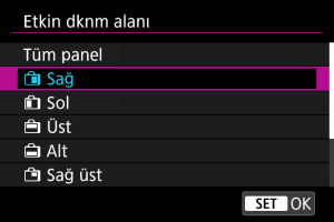 - Soldaki bir konuya geçmek için, [Etkin dknm alanı]’nda ayarlanan alanın sol tarafına dokunun ve sağdaki bir konuya geçmek için sağ tarafa dokunun.