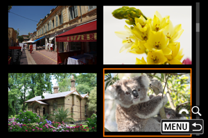 - 4 resimlik indeks ekranı görünür. Seçili resim mavi bir çerçeveyle vurgulanır.