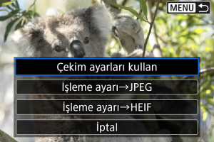 - [İşleme ayarı→JPEG] veya [İşleme ayarı→HEIF]’yi kullanırken [