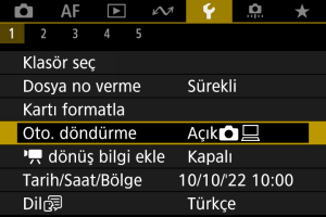 - Otomatik döndürme [Kapalı] ayarındayken çekilen görüntüler, daha sonra otomatik döndürmeyi [Açık] yapsanız dahi döndürülmez.