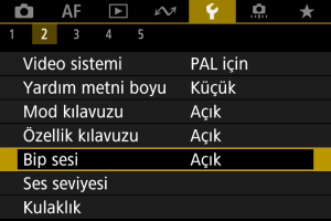 Odaklanma, otomatik zamanlayıcı, deklanşör, ve dokunmatik işlemler için bip sesini kapatır.