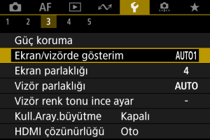 Ekran açık olduğunda vizör sensörünün yanlışlıkla aktifleşmesini önlemek için gösterim için ekranı veya vizörü kullanabilirsiniz.