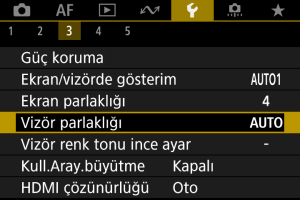 kadranını çevirerek vizör parlaklığını ayarlayın, sonra