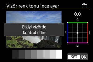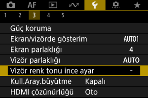 1. [Ayarlama: Vizör renk tonu ince ayar] seçimi yapın.